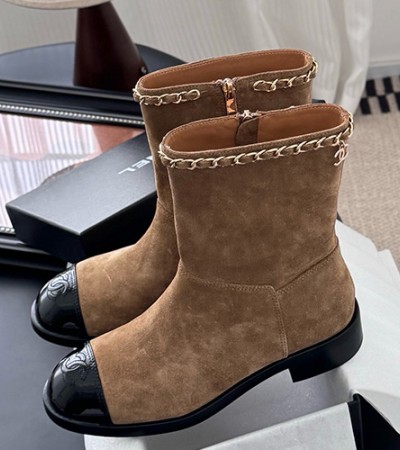 • [홍콩명품.CHANEL] 샤넬 25SS 로고 여성 레더 가죽 구두 부츠 (베이지), SE5758, GHS, 명품스니커즈,운동화,구두,로퍼,하이탑,신발