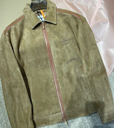[홍콩명품,MIU MIU] 미우미우 25SS 로고 레더 가죽 카라 자켓 (카라멜), BM22877, PG, 레플리카의류,미러급사이트 > 남자의류