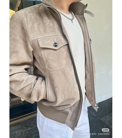 [홍콩명품.TOM FORD] 톰포드 25SS 로고 하이넥 레더 가죽 봄버 자켓 (베이지), BM22880, PG, 레플리카의류,미러급사이트 > 남자의류