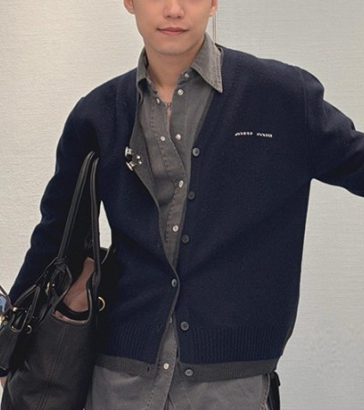[홍콩명품,MIU MIU] 미우미우 25SS 로고 V넥 니트 가디건 (2컬러), BM22975, KB, 레플리카의류,미러급사이트 > 남자의류