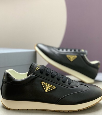 • [홍콩명품,PRADA] 프라다 25SS 삼각로고 레더 가죽 스니커즈 운동화 (블랙), SE5802, PMD, 명품스니커즈,운동화,구두,로퍼,하이탑,신발