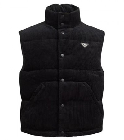 • [홍콩명품,PRADA] 프라다 25SS 삼각로고 코드류이 골덴 다운 패딩 조끼 베스트 (블랙), BM23135, JL, 레플리카의류,미러급사이트