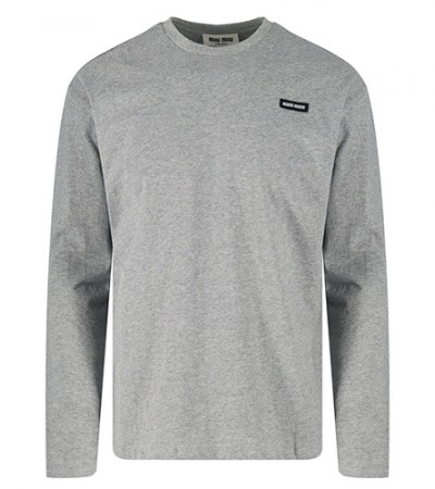 • [홍콩명품,MIU MIU] 미우미우 25SS 로고 긴팔 티셔츠 (그레이), BM23160, JL, 레플리카의류,미러급사이트