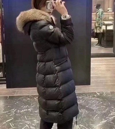 • [홍콩명품.MONCLER] 몽클레어 25SS 로고 여성 폭스퍼 후드 구스다운 롱 패딩 자켓 (블랙), BM23212, KSM, 레플리카의류,미러급사이트