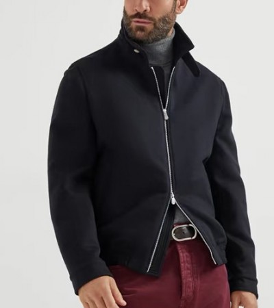 [홍콩명품.Brunello Cucinelli ] 브루넬로 쿠치넬리 25SS 로고 울 캐시미어 카라 봄버 자켓 (블랙), BM23242, PG, 레플리카의류,미러급사이트 > 남자의류