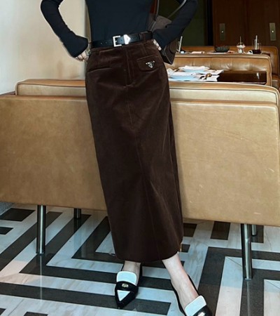 • [홍콩명품,PRADA] 프라다 25SS 삼각로고 여성 코드류이 골덴 미디 스커트 (2컬러), BM23267, PG, 레플리카의류,미러급사이트