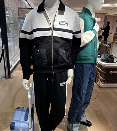• [홍콩명품.LOUIS VUITTON] 루이비통 25SS 로고 트레이닝 카라 집업 자켓 + 조거 팬츠 바지 상하의 세트 (블랙-화이트), BM23299, YS, 레플리카의류,미러급사이트