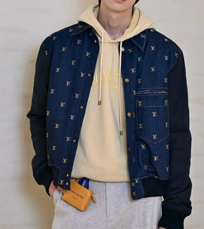 • [홍콩명품.LOUIS VUITTON] 루이비통 25SS 로고 솜패딩 데님 카라 봄버 자켓 1AIN60, BM23339, KB, 레플리카의류,미러급사이트