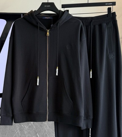• [홍콩명품.LOUIS VUITTON] 루이비통 25SS 로고 자수 트레이닝 후드 집업 자켓 + 조거 팬츠 바지 상하의 세트 (블랙), BM23376, G5, 레플리카의류,미러급사이트