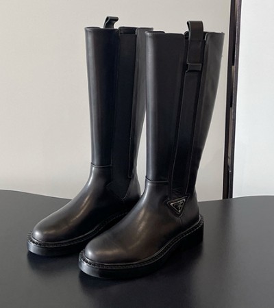 • [홍콩명품,PRADA] 프라다 25SS 삼각로고 여성 레더 가죽 롱 구두 부츠 (블랙), SE5838, GHS, 명품스니커즈,운동화,구두,로퍼,하이탑,신발