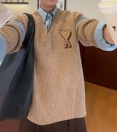 • [홍콩명품.AMI] 아미 25SS 로고 V넥 니트 스웨터 (2컬러), BM23411, KB, 레플리카의류,미러급사이트