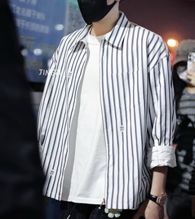 • [홍콩명품.LOUIS VUITTON] 루이비통 25SS 로고 스트라이프 집업 남방 셔츠 (화이트), BM23427, KB, 레플리카의류,미러급사이트
