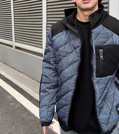 [홍콩명품,FENDI] 펜디 25SS 로고 패턴 후드 다운 패딩 자켓 (블루), BM23434, KB, 레플리카의류,미러급사이트 > 남자의류