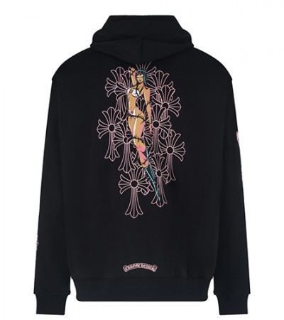 • [홍콩명품.Chrome Hearts] 크롬하츠 25SS 로고 자수 플리스 후드 티셔츠 (블랙), BM23338, KB, 레플리카의류,미러급사이트