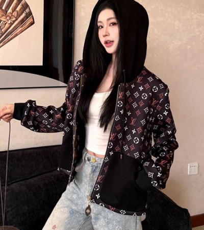 • [홍콩명품.LOUIS VUITTON] 루이비통 25SS 로고 여성 모노그램 후드 집업 자켓 (블랙), BM23455, MC, 레플리카의류,미러급사이트