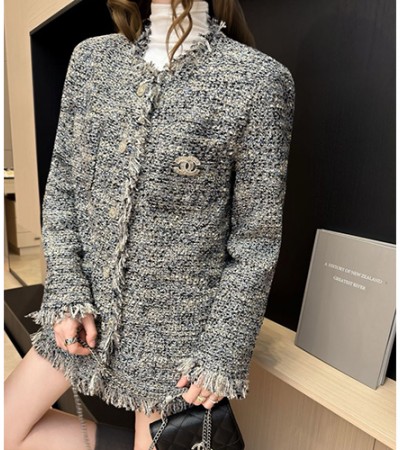 • [홍콩명품.CHANEL] 샤넬 25SS 로고 여성 라운드넥 트위드 자켓 (다크그레이), BM23456, MC, 레플리카의류,미러급사이트
