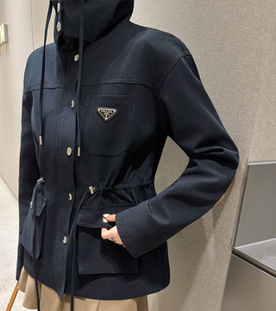 • [홍콩명품,PRADA] 프라다 25SS 삼각로고 여성 데님 후드 코트 자켓 (2컬러), BM23481, MC, 레플리카의류,미러급사이트