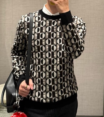 [홍콩명품,FENDI] 펜디 25SS 로고 패턴 캐시미어 니트 스웨터 (블랙), BM23547, KB, 레플리카의류,미러급사이트 > 남자의류