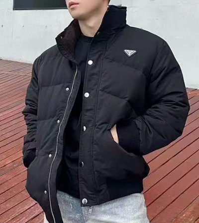 • [홍콩명품,PRADA] 프라다 25SS 삼각로고 카라 다운 패딩 봄버 자켓 (블랙), BM23566, KB, 레플리카의류,미러급사이트