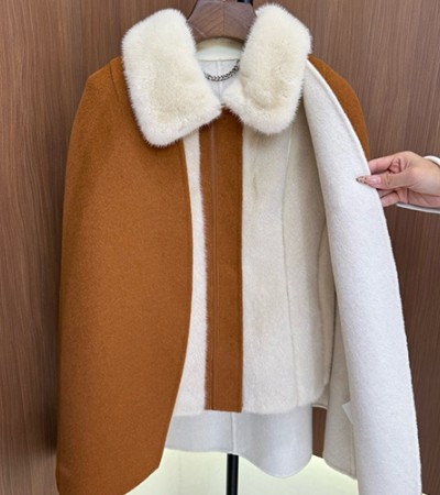 • [홍콩명품.Loro Piana] 로로피아나 25SS 로고 여성 캐시미어 탈부착 2PCS 퍼 카라 코트 자켓 (브라운), BM23599, TOM, 레플리카의류,미러급사이트