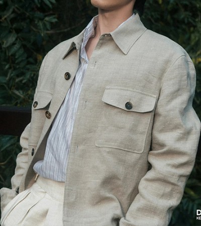 [홍콩명품.Loro Piana] 로로피아나 25SS 로고 린넨 카라 버튼 자켓 (아이보리), BM23633, HH, 레플리카의류,미러급사이트 > 남자의류