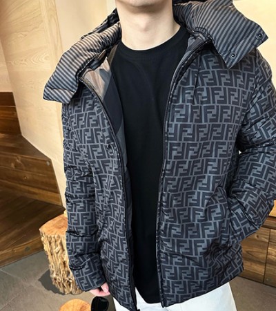 • [홍콩명품,FENDI] 펜디 25SS 로고 패턴 리버서블 다운 패딩 후드 바람막이 자켓 (블랙), BM23700, KK, 레플리카의류,미러급사이트