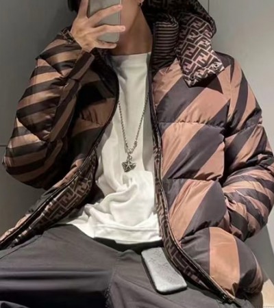 • [홍콩명품,FENDI] 펜디 25SS 로고 패턴 리버서블 다운 패딩 후드 바람막이 자켓 (브라운), BM23701, KK, 레플리카의류,미러급사이트