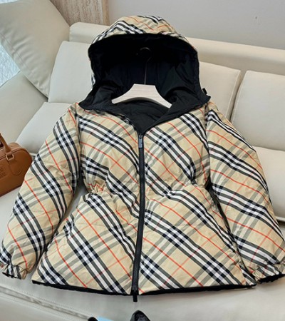 • [홍콩명품.Burberry] 버버리 25SS 로고 여성 체크패턴 리버서블 구스다운 패딩 후드 코트 자켓 (2컬러), BM23751, KSM, 레플리카의류,미러급사이트