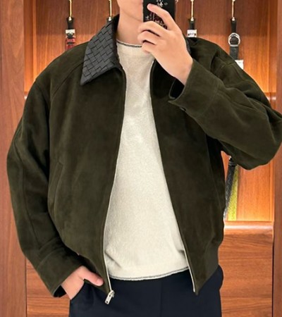 • [홍콩명품.BOTTEGA VENETA] 보테가베네타 25SS 로고 인트레치아토 카라 레더 가죽 봄버 자켓 (카키), BM23815, TOM, 레플리카의류,미러급사이트
