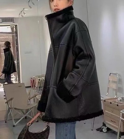 • [홍콩명품.TOTEME] 토템 25SS 로고 여성 시어링 레더 가죽 코트 자켓 (블랙), BM23847, PG, 레플리카의류,미러급사이트