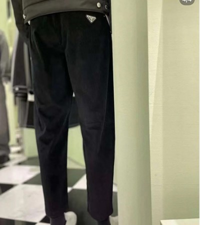 [홍콩명품,PRADA] 프라다 25SS 삼각로고 코드류이 골덴 팬츠 바지 (블랙), BM23866, JL, 레플리카의류,미러급사이트 > 남자의류