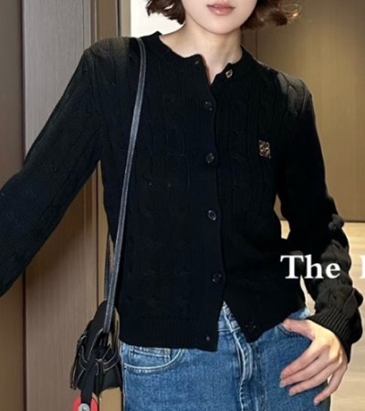 • [홍콩명품.LOEWE] 로에베 25SS 로고 자수 여성 라운드넥 니트 가디건 (블랙), BM23881, JL, 레플리카의류,미러급사이트