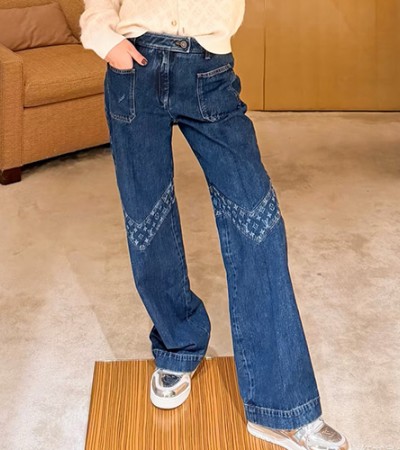 • [홍콩명품.LOUIS VUITTON] 루이비통 25SS 로고 여성 모노그램 오버핏 데님 팬츠 진 청바지, BM23912, MC, 레플리카의류,미러급사이트