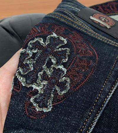 • [홍콩명품.Chrome Hearts] 크롬하츠 25SS 로고 크로스 데님 팬츠 진 청바지, BM23934, 레플리카의류,미러급사이트