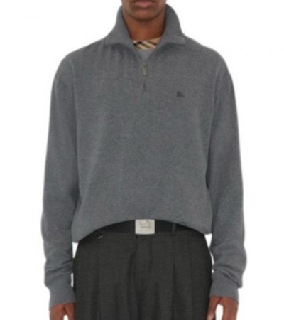 [홍콩명품.Burberry] 버버리 25SS 로고 하이넥 하프지퍼 캐시미어 니트 스웨터 (그레이), BM23957, JL, 레플리카의류,미러급사이트 > 남자의류