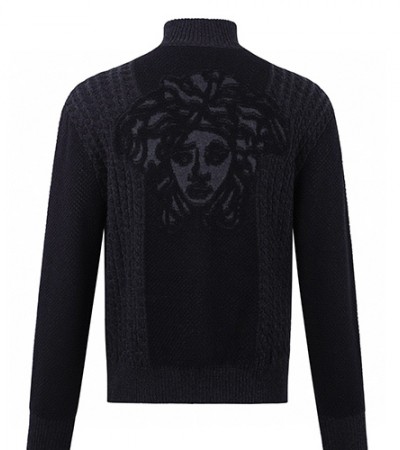 • [홍콩명품.VERSACE] 베르사체 25SS 로고 하이넥 집업 니트 가디건 자켓 (블랙), BM24032, JL, 레플리카의류,미러급사이트