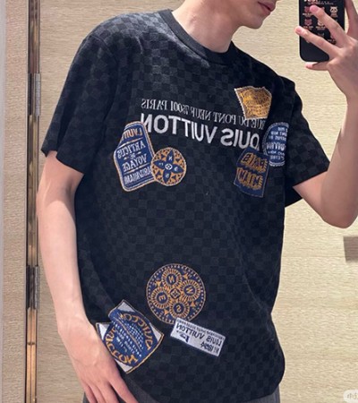 • [홍콩명품.LOUIS VUITTON] 루이비통 25SS 로고 다미에 울 반팔 티셔츠 (블랙), BM24051, KK, 레플리카의류,미러급사이트