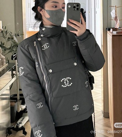 • [홍콩명품.CHANEL] 샤넬 25SS 로고 터틀넥 구스다운 패딩 자켓 (블랙-화이트), BM24072, KK, 레플리카의류,미러급사이트