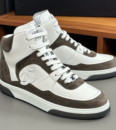 • [홍콩명품.CHANEL] 샤넬 25SS 로고 레더 가죽 하이탑 스니커즈 운동화 (브라운-화이트), SE5959, S3, 명품스니커즈,운동화,구두,로퍼,하이탑,신발