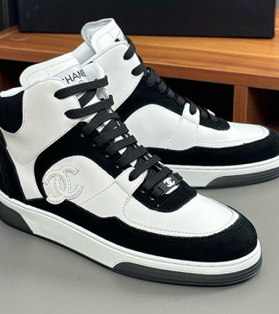 [홍콩명품.CHANEL] 샤넬 25SS 로고 레더 가죽 하이탑 스니커즈 운동화 (블랙-화이트), SE5960, S3, 명품스니커즈,운동화,구두,로퍼,하이탑,신발 > 신발