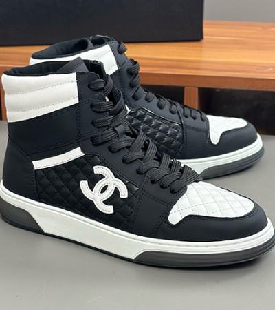 [홍콩명품.CHANEL] 샤넬 25SS 로고 레더 가죽 하이탑 스니커즈 운동화 (블랙-화이트), SE5963, S3, 명품스니커즈,운동화,구두,로퍼,하이탑,신발 > 신발
