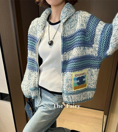 • [홍콩명품.CHANEL] 샤넬 25SS 로고 패턴 여성 니트 가디건 집업 자켓, BM24088, TBG, 레플리카의류,미러급사이트