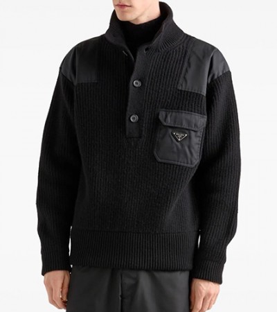 • [홍콩명품,PRADA] 프라다 25SS 삼각로고 터틀넥 하프버튼 코드류이 골덴 맨투맨 티셔츠 (3컬러), BM24186, HH, 레플리카의류,미러급사이트