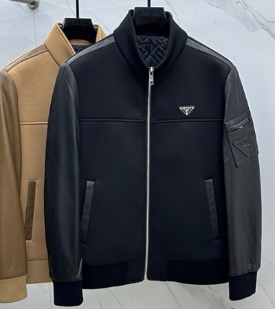 [홍콩명품,PRADA] 프라다 25SS 삼각로고 터틀넥 레더 가죽 레이어드 봄버 자켓 (2컬러), BM24207, HH, 레플리카의류,미러급사이트 > 남자의류