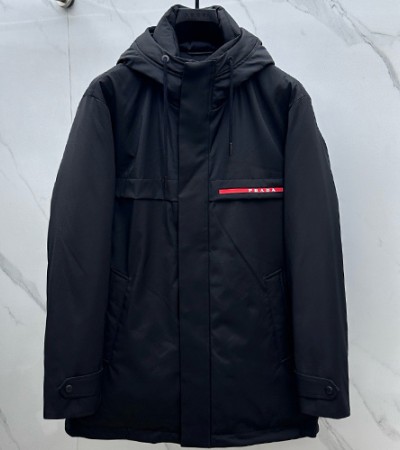 • [홍콩명품,PRADA] 프라다 25SS 로고 후드 다운 패딩 파카 자켓 (블랙), BM24222, HH, 레플리카의류,미러급사이트