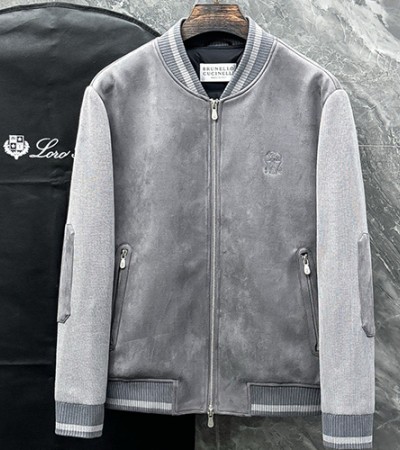 [홍콩명품.Brunello Cucinelli ] 브루넬로 쿠치넬리 25SS 로고 자수 레더 가죽 다운 패딩 봄버 자켓 (3컬러), BM24226, HH, 레플리카의류,미러급사이트 > 남자의류
