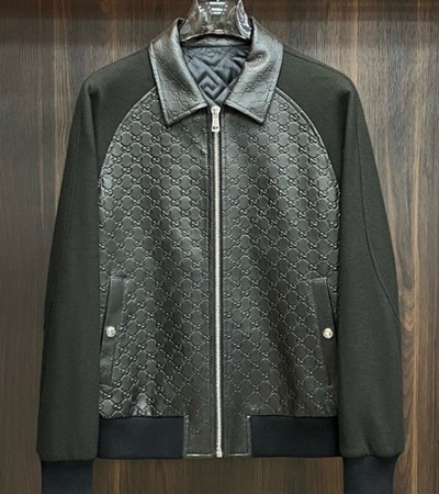 [홍콩명품.Gucci] 구찌 25SS 로고 GG수프림 레더 가죽 레이어드 카라 봄버 자켓 (2컬러), BM24228, HH, 레플리카의류,미러급사이트 > 남자의류