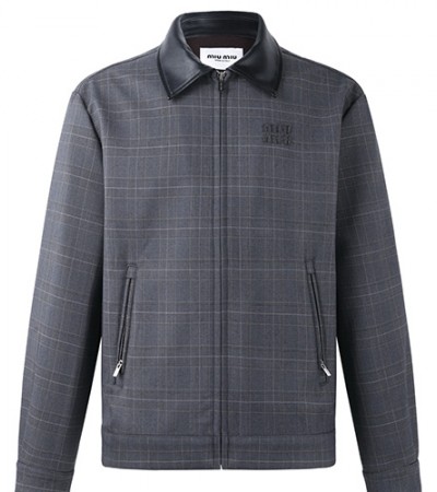 • [홍콩명품,MIU MIU] 미우미우 26SS 로고 패턴 카라 봄버 자켓 (그레이), BM24349, KK, 레플리카의류,미러급사이트