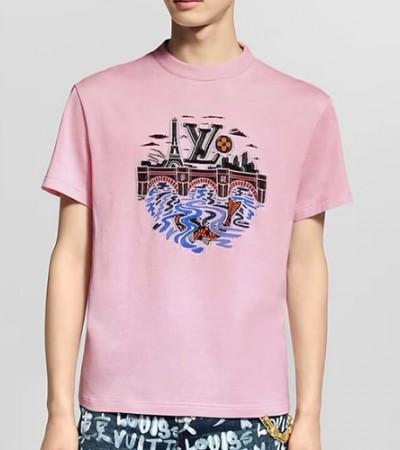 • [홍콩명품.LOUIS VUITTON] 루이비통 26SS 로고 그래픽 반팔 티셔츠 (핑크), BM24350, KK, 레플리카의류,미러급사이트